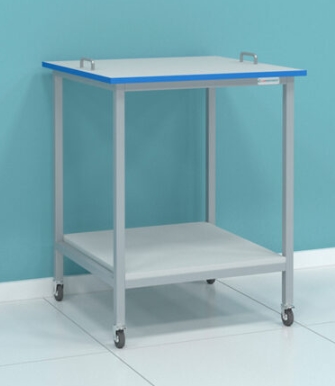 Сварной каркас изготовлен из профильной трубы 25х25х1,5, окрашенной порошковой краской. Диаметр колес - 60 мм, два колеса оборудованы стопором. Рабочая поверхность - на выбор по прайсу. Полка выполнена из влагостойкой ЛДСП 16 мм, кромки - ПВХ 2 мм. Поставляется в собранном виде.